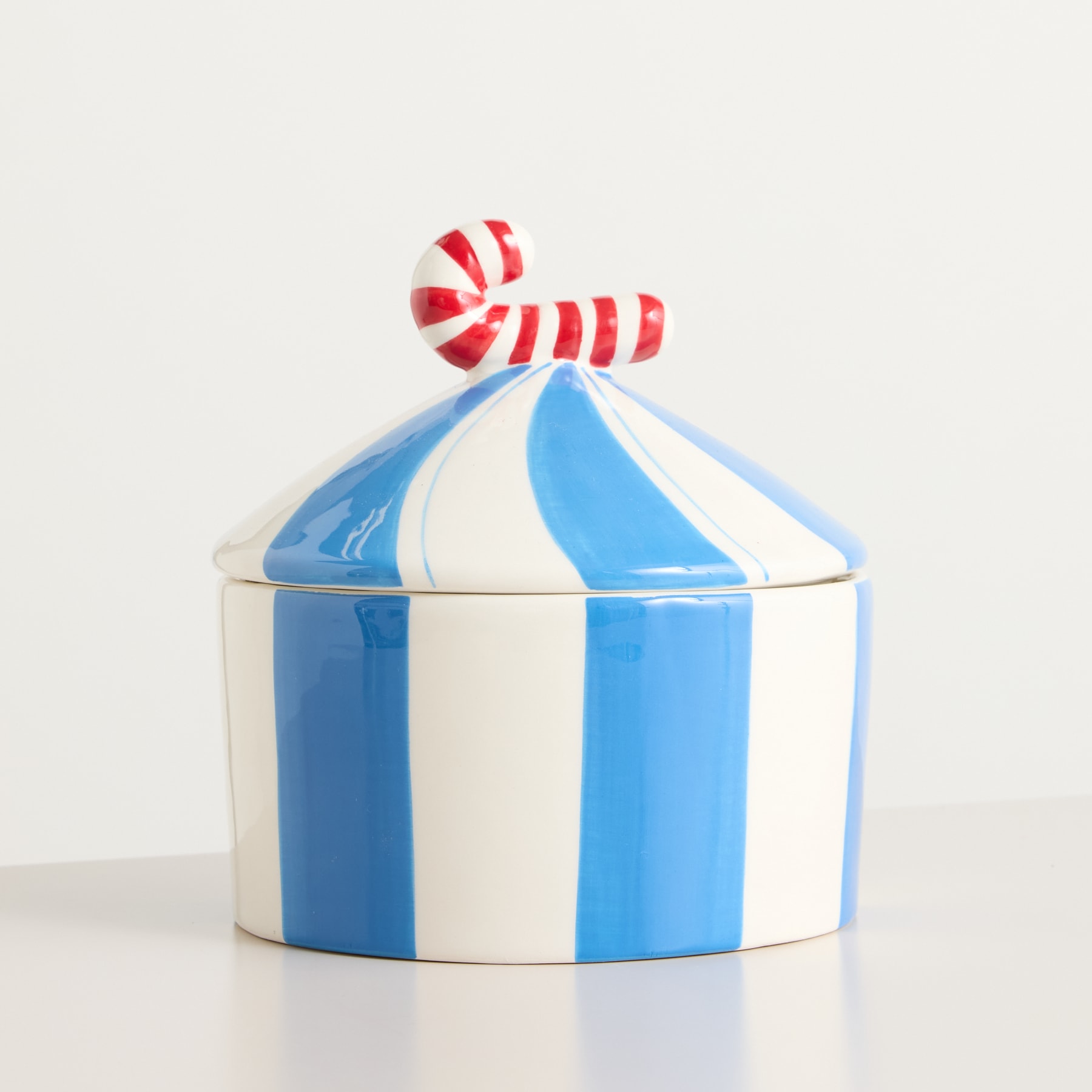 Bist du bereit, deinem Zuhause einen Hauch von weihnachtlichem Flair zu verleihen? Unsere Keramik Bonbondose Blau Weiß Gestreift ist dein perfekter Begleiter für die festliche Jahreszeit! Mit einem Durchmesser von 15 cm und einer Höhe von 15,5 cm bietet sie reichlich Platz für all deine Leckereien. Die elegante Streifenoptik macht sie zu einem echten Hingucker – ideal für den Kaminsims oder den Esstisch. Diese Bonbondose ist nicht nur funktional, sondern auch ein echter Stimmungsaufheller! Ihre robuste Keramik hält deine Süßigkeiten frisch, während das stilvolle Design perfekt zur Weihnachtsdekoration passt. Ob als behaglicher Akzent im Wohnzimmer oder als praktischer Helfer in der Küche, sie wird schnell zu deinem neuen Lieblingsstück. Perfekt für alle, die dem Alltag eine Portion Festlichkeit hinzufügen möchten!