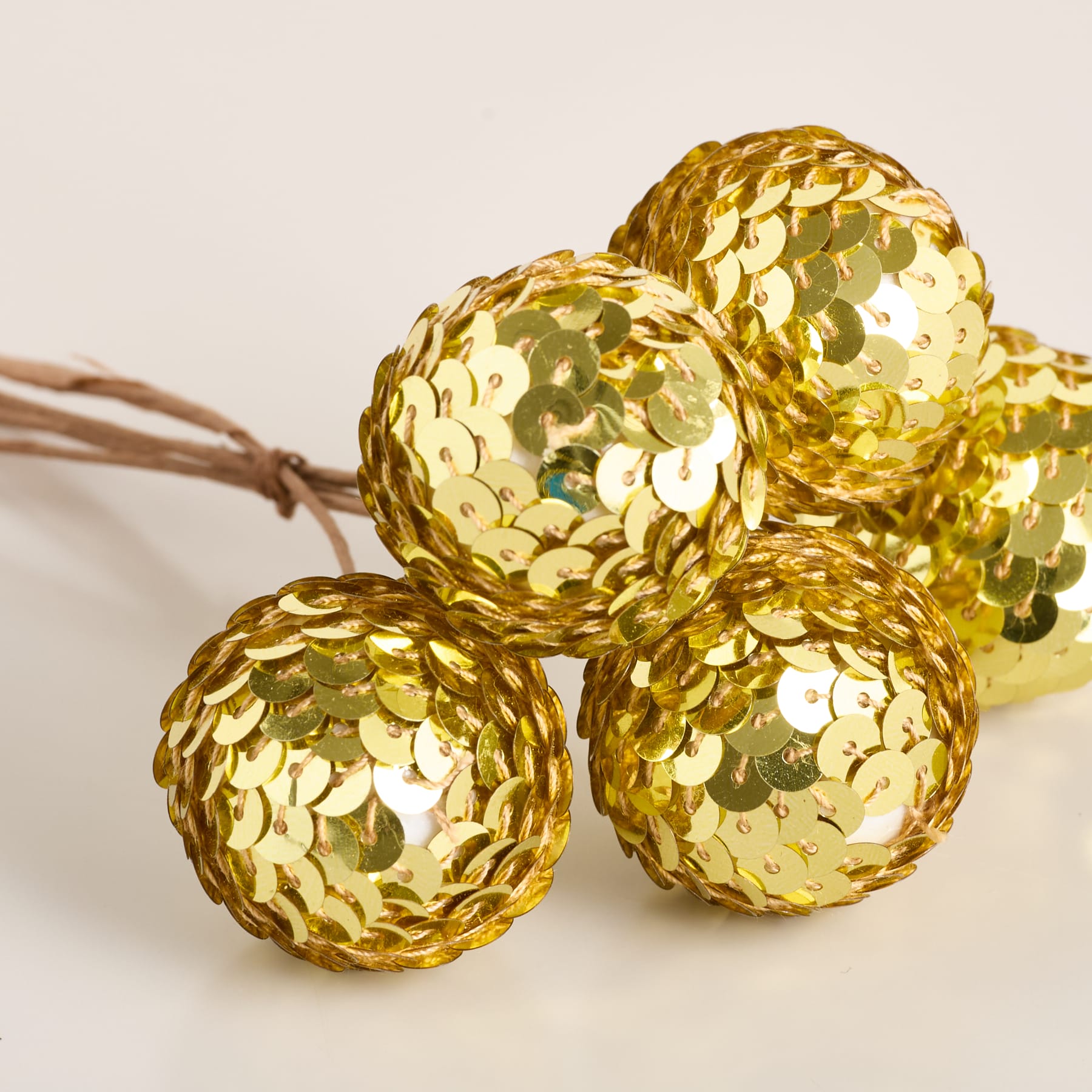 Lust auf ein bisschen Glitzer für deine Adventszeit? Das Deko Pailettenpick Goldfarben 2er-Set ist der perfekte Begleiter, um deinen Adventskranz oder andere weihnachtliche Dekorationen auf ein neues Level zu heben. Mit einer Länge von 10 cm und einem Kugeldurchmesser von 3 cm setzen diese goldenen Pailettenkugeln glänzende Akzente, die nicht nur in der Weihnachtszeit für Begeisterung sorgen. Mach dein Zuhause bereit für die Festtage! Die Pailettenkugeln am Draht lassen sich kinderleicht in Tannengrün, Gestecke oder auch Tischdekorationen integrieren. Ihre goldene Farbe reflektiert das Licht und schafft eine zauberhafte Atmosphäre, die alle Blicke auf sich zieht. Perfekt für alle, die ein bisschen festliche Magie in ihre vier Wände bringen möchten!