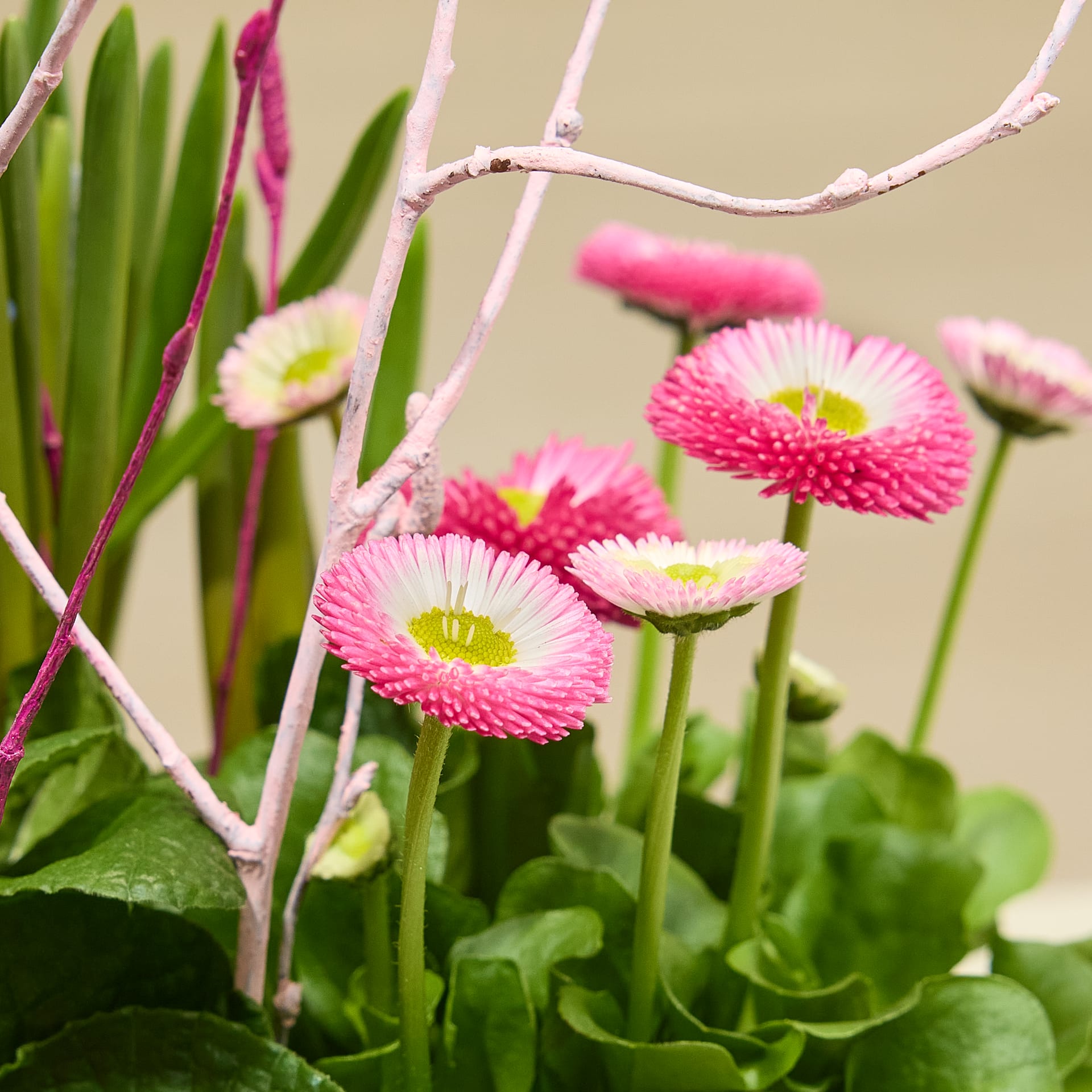 Mit Frühlingsfrisch schenkst du pure Lebensfreude, die den Frühling direkt vor die Haustür bringt. In einem liebevoll arrangierten Korb vereinen sich Bellis, Primeln und Muscari zu einem farbenfrohen Ensemble, das gute Laune versprüht und Herzen erwärmt. Die harmonische Mischung aus zarten Blüten und frischem Grün macht dieses Pflanzengeschenk zu einem kleinen Frühlingsgruß für deine Lieblingsmenschen. Dank ihrer Outdoor-Eignung fühlen sich die Pflanzen auf Balkon, Terrasse oder im Garten besonders wohl und zeigen dort ihre ganze natürliche Schönheit. Mit einer Wuchshöhe von ca. 26 cm und einer Topfgröße von 17 cm ist Frühlingsfrisch kompakt, dekorativ und sofort bereit, Freude zu schenken – ganz ohne viele Worte, aber mit viel Gefühl.